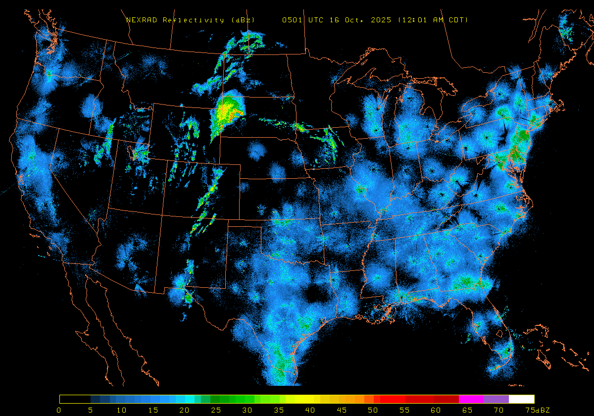 NEXRAD Base Reflectivity & Wind Maps: October 15, 2025 at 3pm ET to next day at 3pm (2 frames/hour)