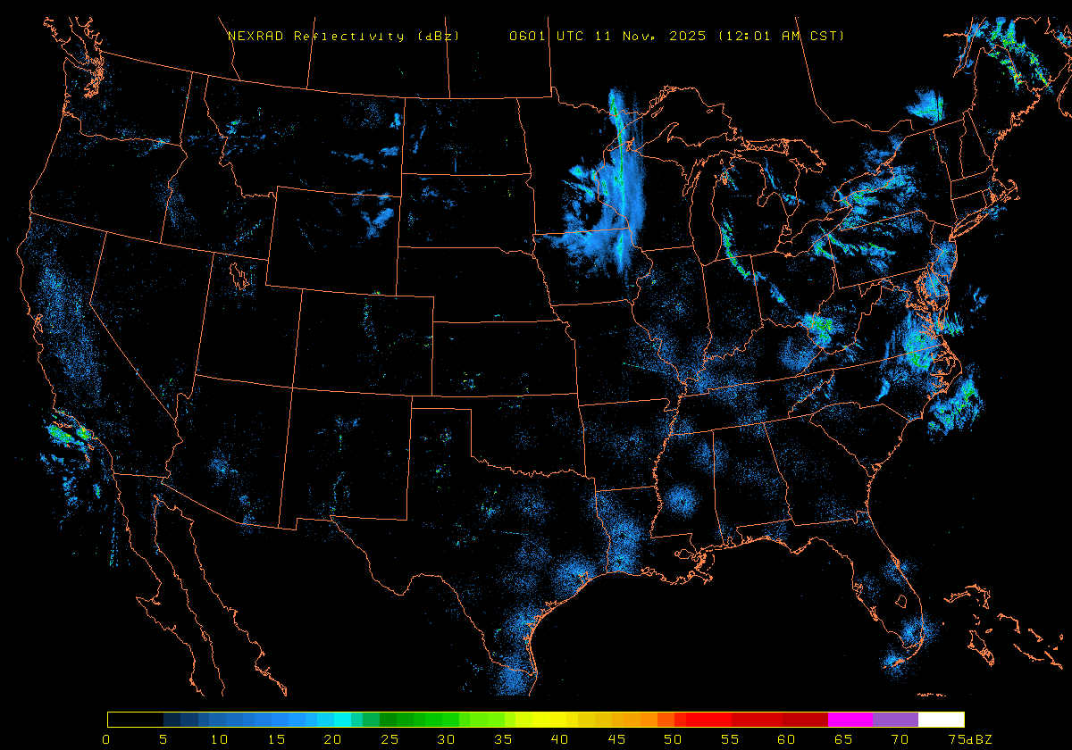 NEXRAD Base Reflectivity & Wind Maps: November 10, 2025 at 3pm ET to next day at 3pm (2 frames/hour)