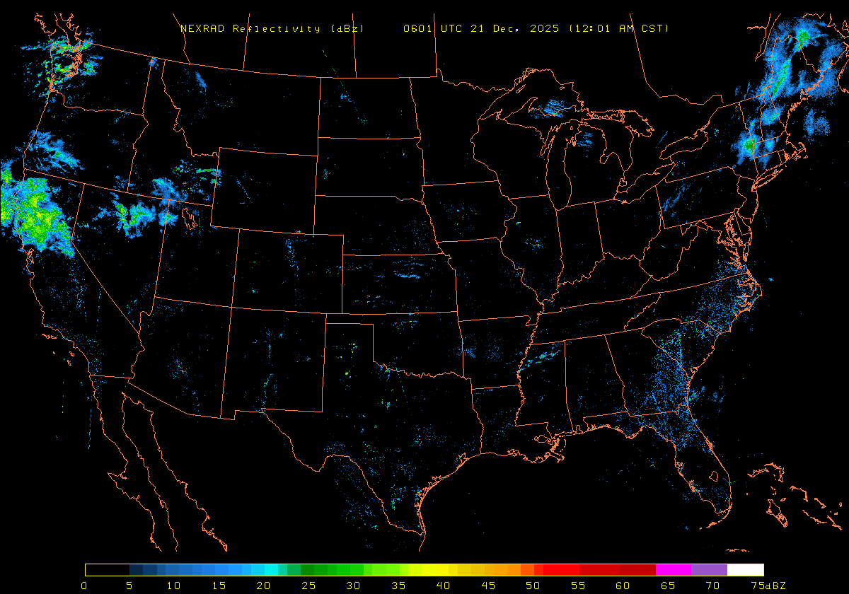 NEXRAD Base Reflectivity & Wind Maps: December 20, 2025 at 3pm ET to next day at 3pm (2 frames/hour)