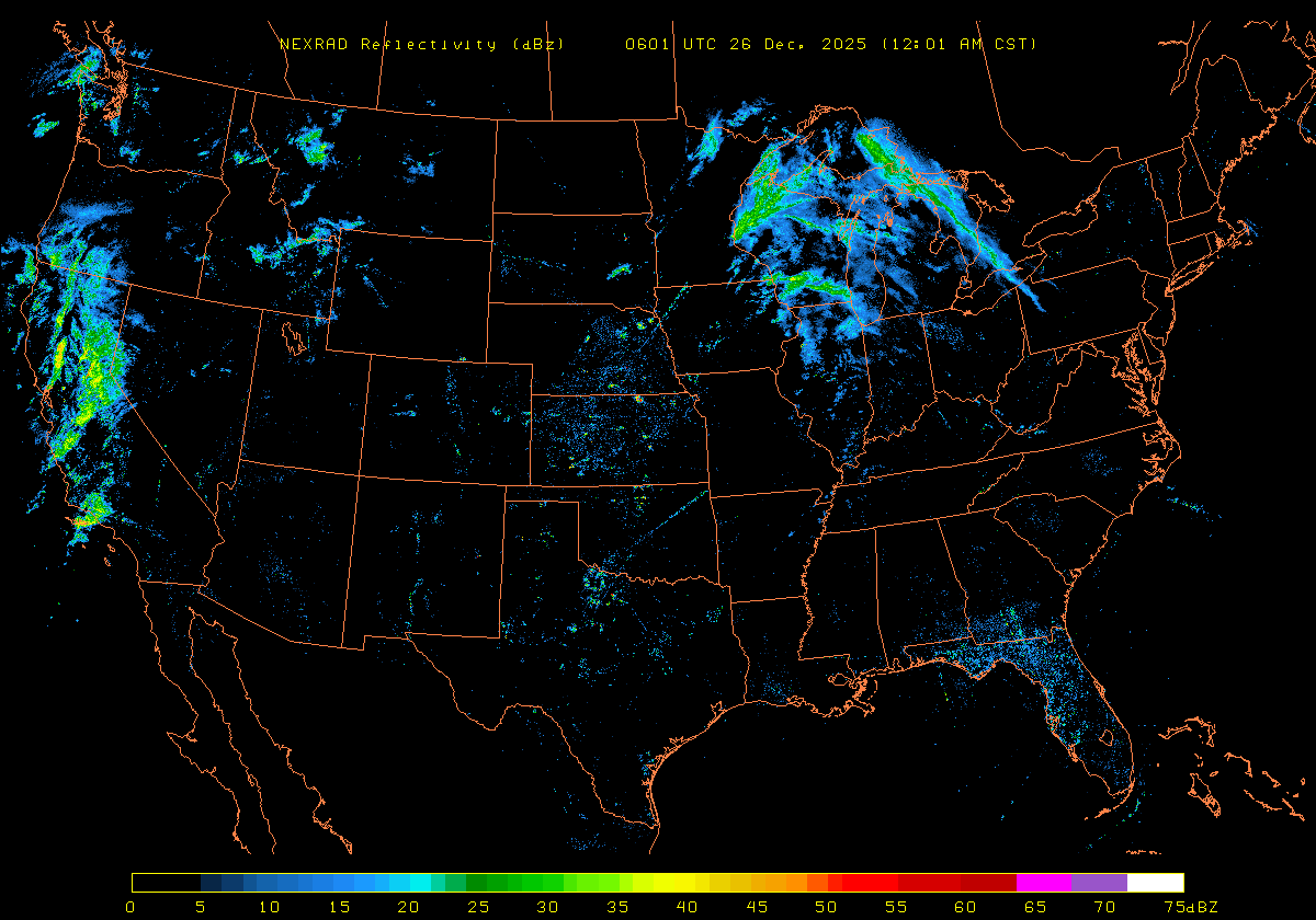 NEXRAD Base Reflectivity & Wind Maps: December 25, 2025 at 3pm ET to next day at 3pm (2 frames/hour)