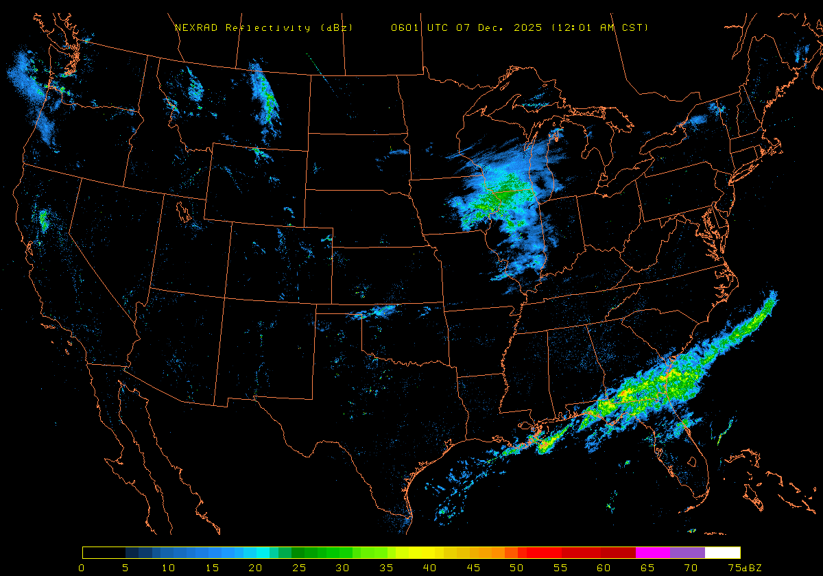 NEXRAD Base Reflectivity & Wind Maps: December 6, 2025 at 3pm ET to next day at 3pm (2 frames/hour)