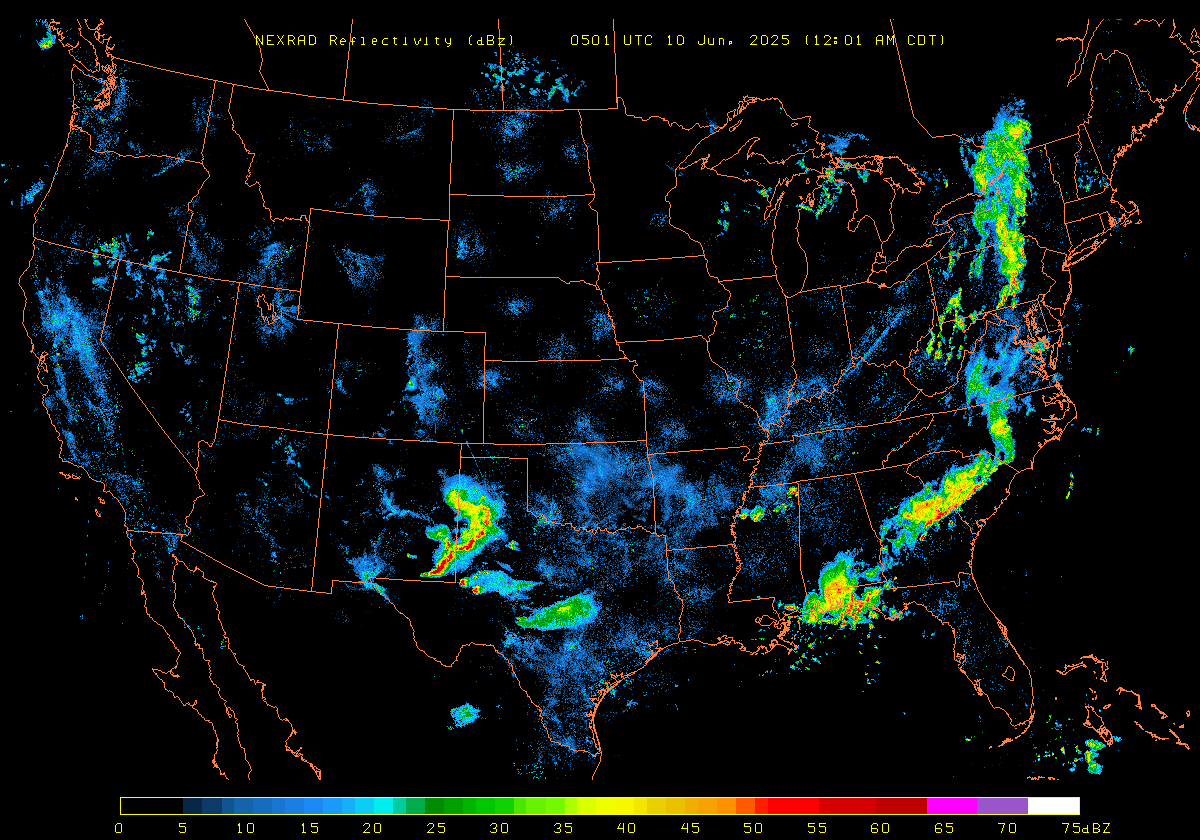 NEXRAD Base Reflectivity & Wind Maps: June 9, 2025 at 3pm ET to next day at 3pm (2 frames/hour)