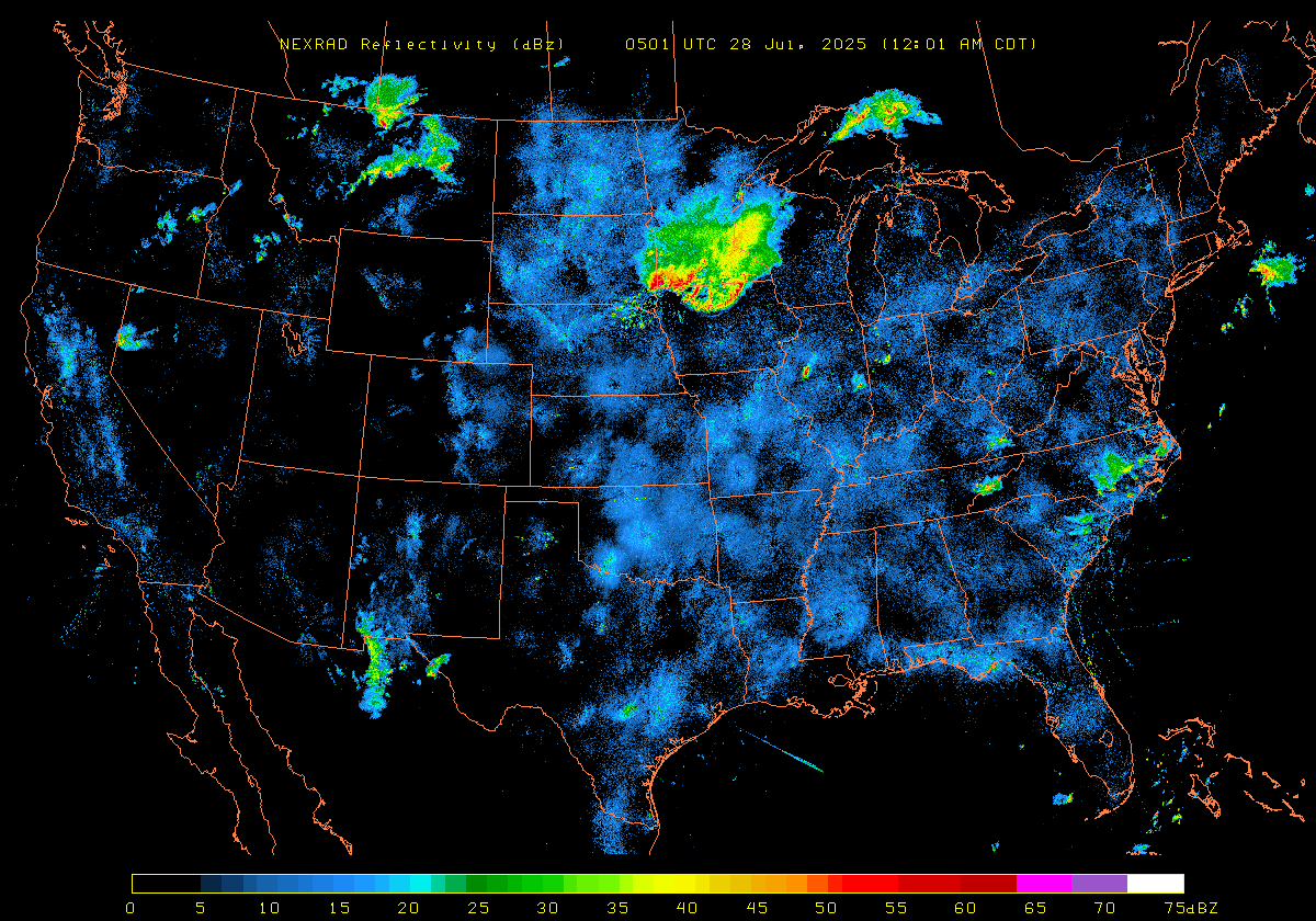 NEXRAD Base Reflectivity & Wind Maps: July 27, 2025 at 3pm ET to next day at 3pm (2 frames/hour)