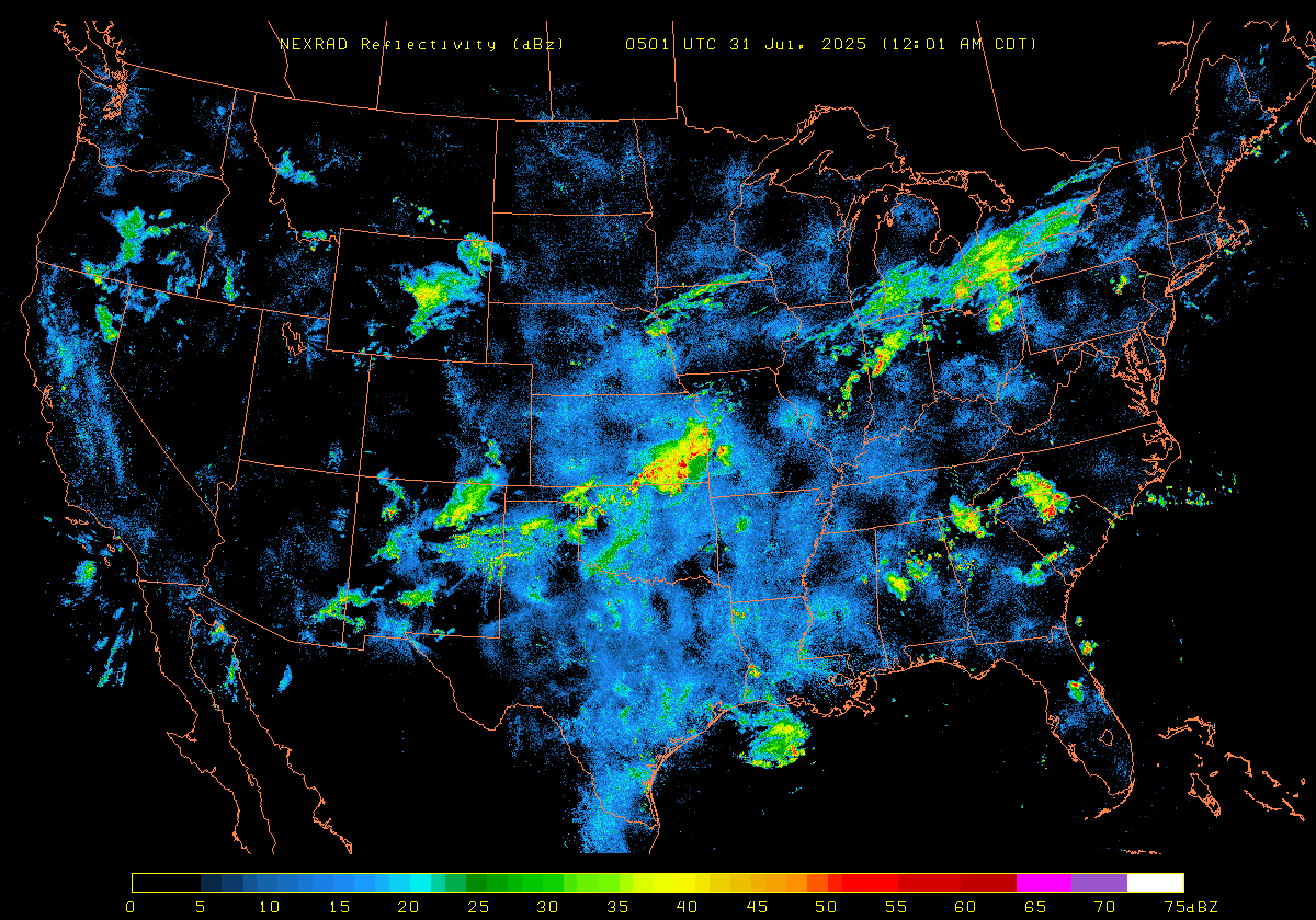 NEXRAD Base Reflectivity & Wind Maps: July 30, 2025 at 3pm ET to next day at 3pm (2 frames/hour)