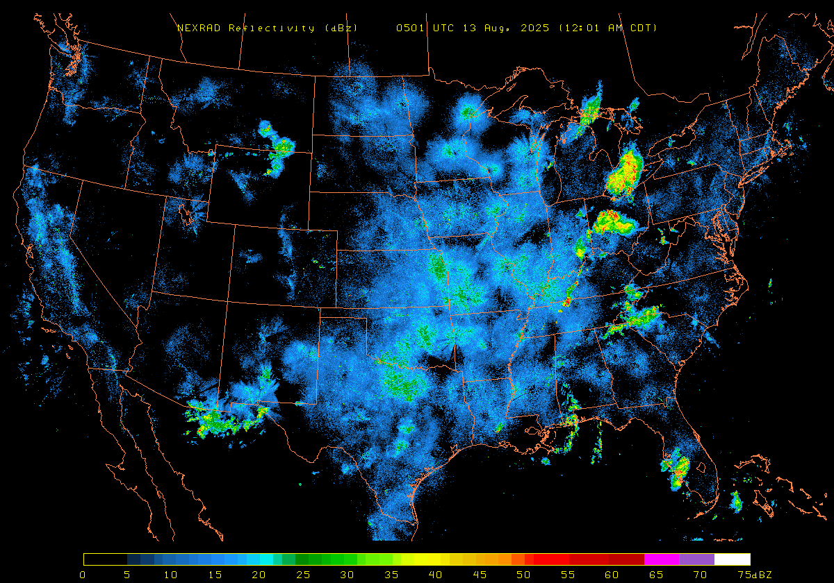NEXRAD Base Reflectivity & Wind Maps: August 12, 2025 at 3pm ET to next day at 3pm (2 frames/hour)