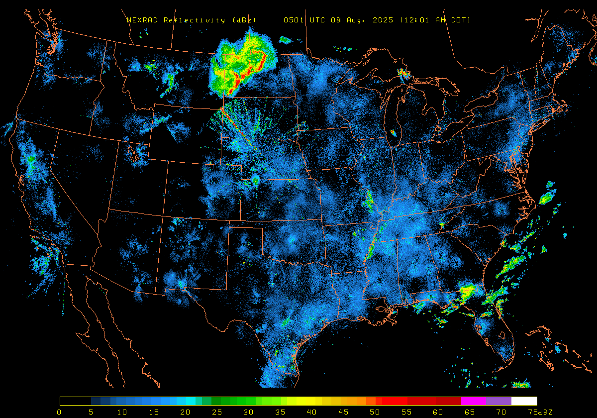 NEXRAD Base Reflectivity & Wind Maps: August 7, 2025 at 3pm ET to next day at 3pm (2 frames/hour)