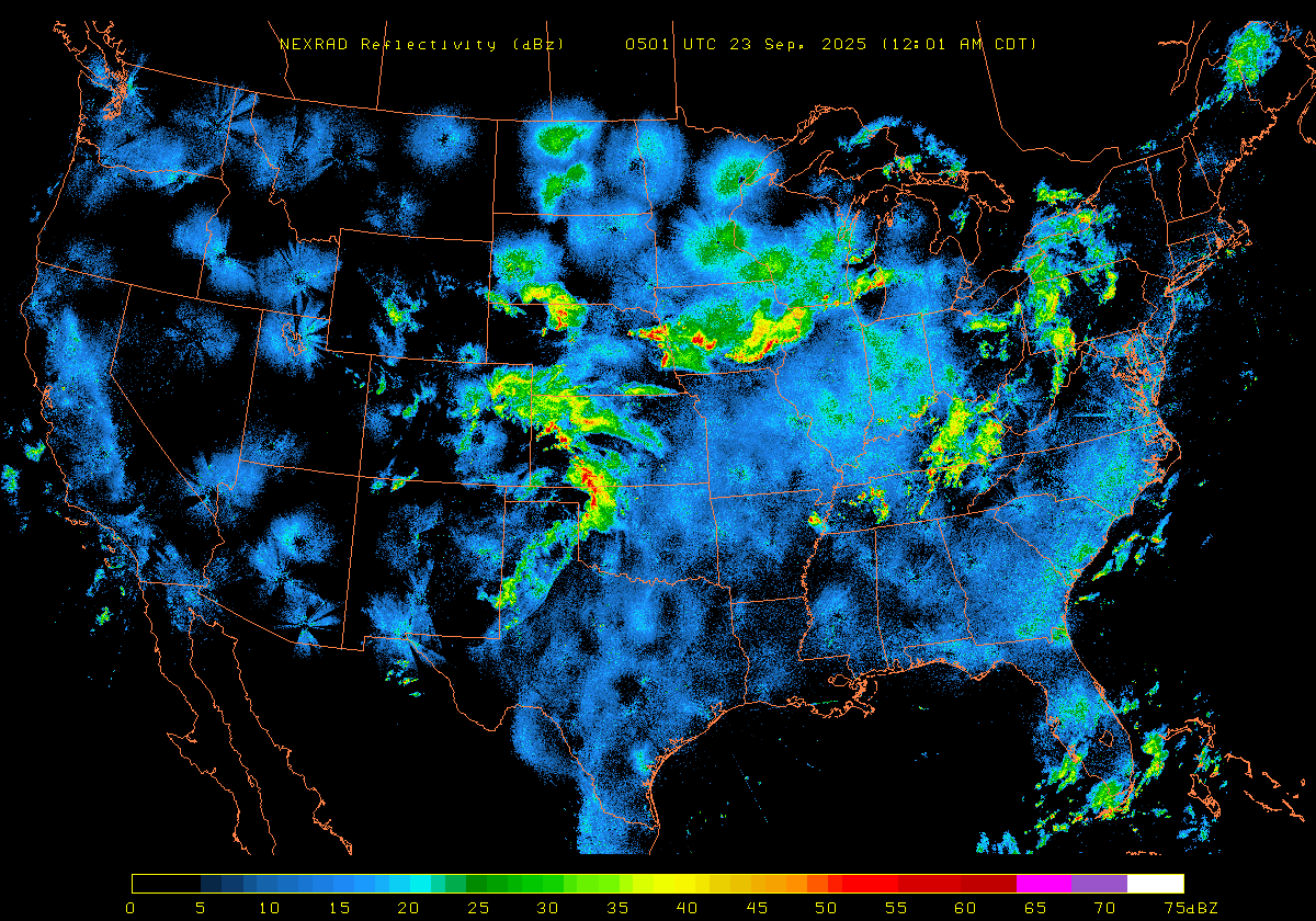 NEXRAD Base Reflectivity & Wind Maps: September 22, 2025 at 3pm ET to next day at 3pm (2 frames/hour)