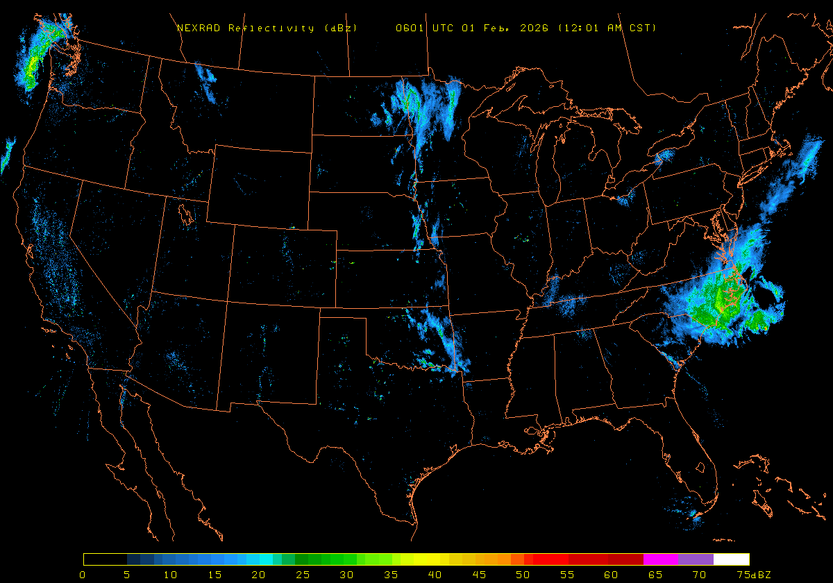 NEXRAD Base Reflectivity & Wind Maps: January 31, 2026 at 3pm ET to next day at 3pm (2 frames/hour)