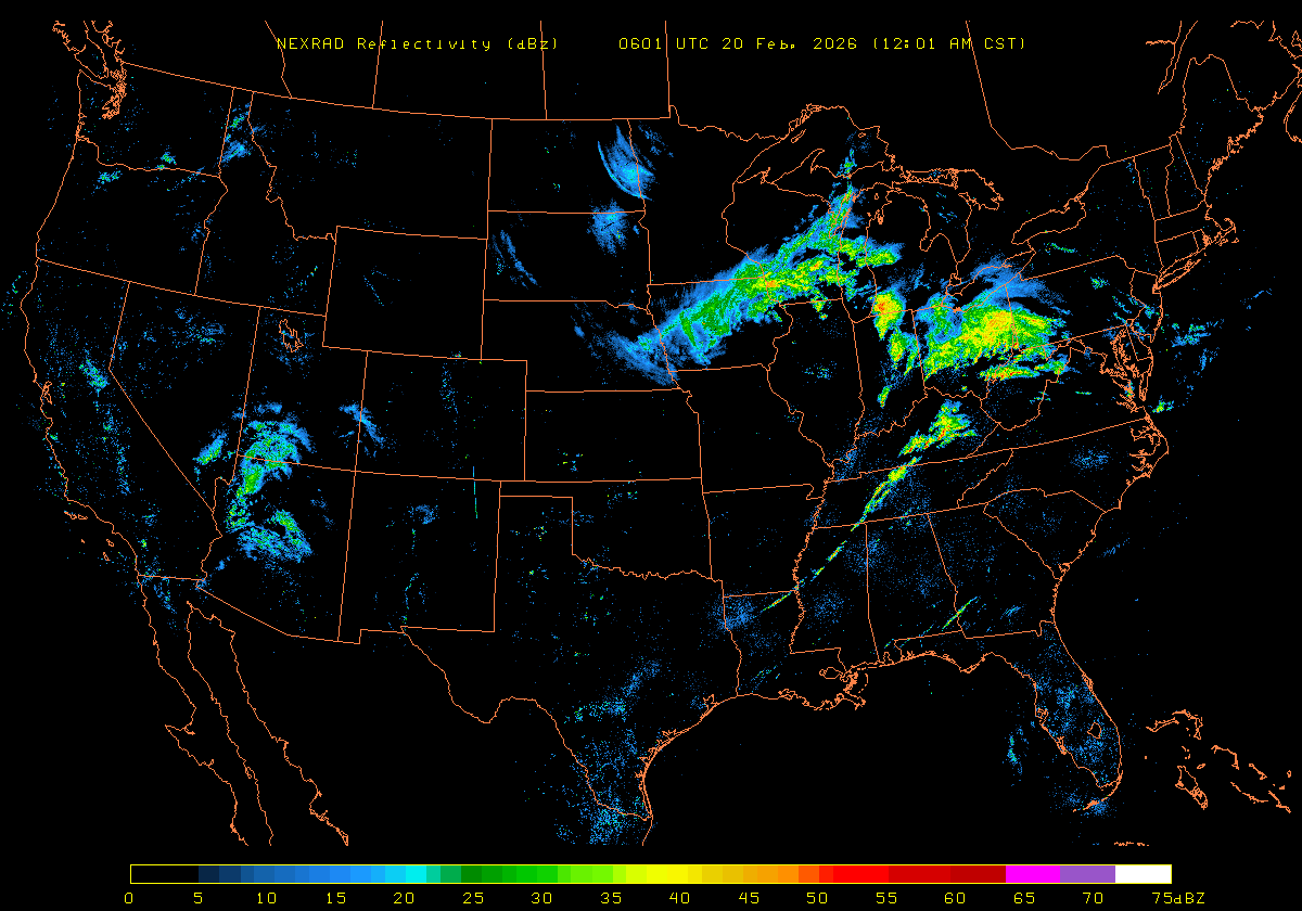 NEXRAD Base Reflectivity & Wind Maps: February 19, 2026 at 3pm ET to next day at 3pm (2 frames/hour)