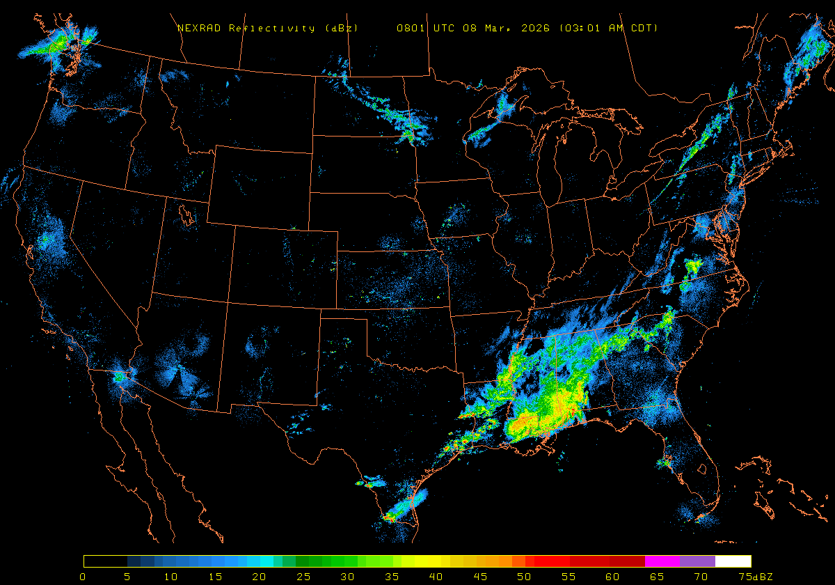 NEXRAD Base Reflectivity & Wind Maps: March 7, 2026 at 3pm ET to next day at 3pm (2 frames/hour)