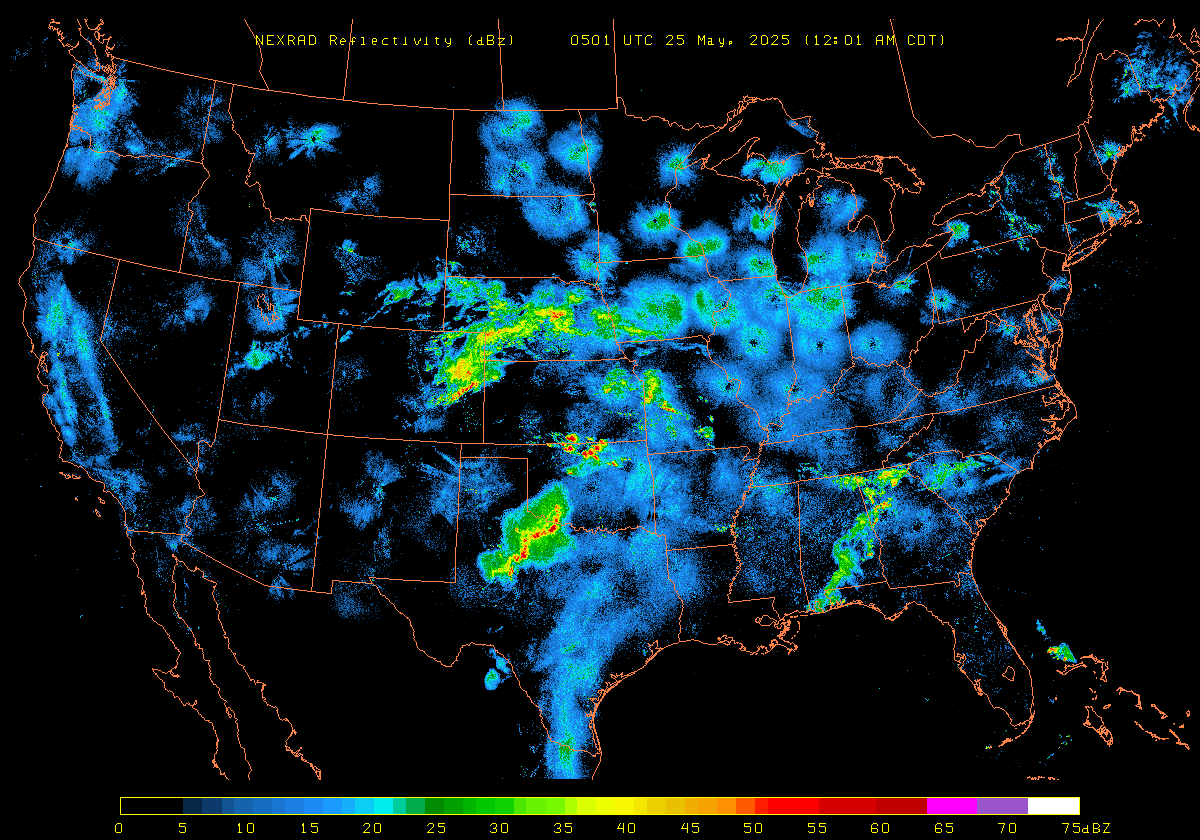 NEXRAD Base Reflectivity & Wind Maps: May 24, 2025 at 3pm ET to next day at 3pm (2 frames/hour)