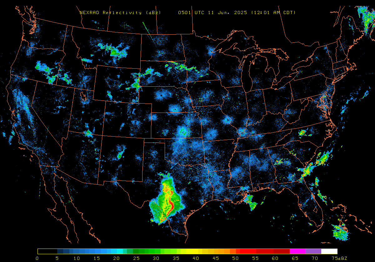 NEXRAD Base Reflectivity & Wind Maps: June 10, 2025 at 3pm ET to next day at 3pm (2 frames/hour)