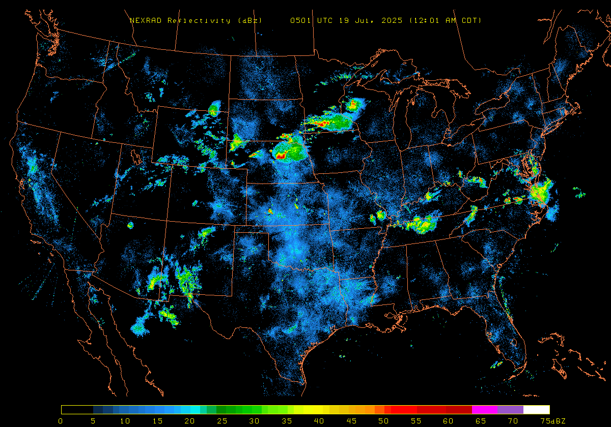 NEXRAD Base Reflectivity & Wind Maps: July 18, 2025 at 3pm ET to next day at 3pm (2 frames/hour)