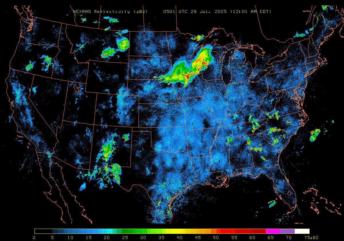 NEXRAD Base Reflectivity & Wind Maps: July 28, 2025 at 3pm ET to next day at 3pm (2 frames/hour)