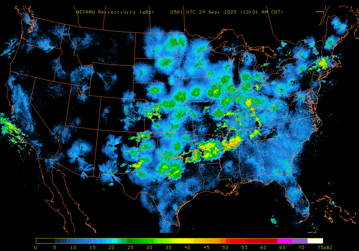 NEXRAD Base Reflectivity & Wind Maps: September 23, 2025 at 3pm ET to next day at 3pm (2 frames/hour)
