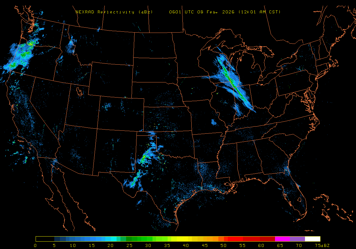 NEXRAD Base Reflectivity & Wind Maps: February 7, 2026 at 3pm ET to next day at 3pm (2 frames/hour)