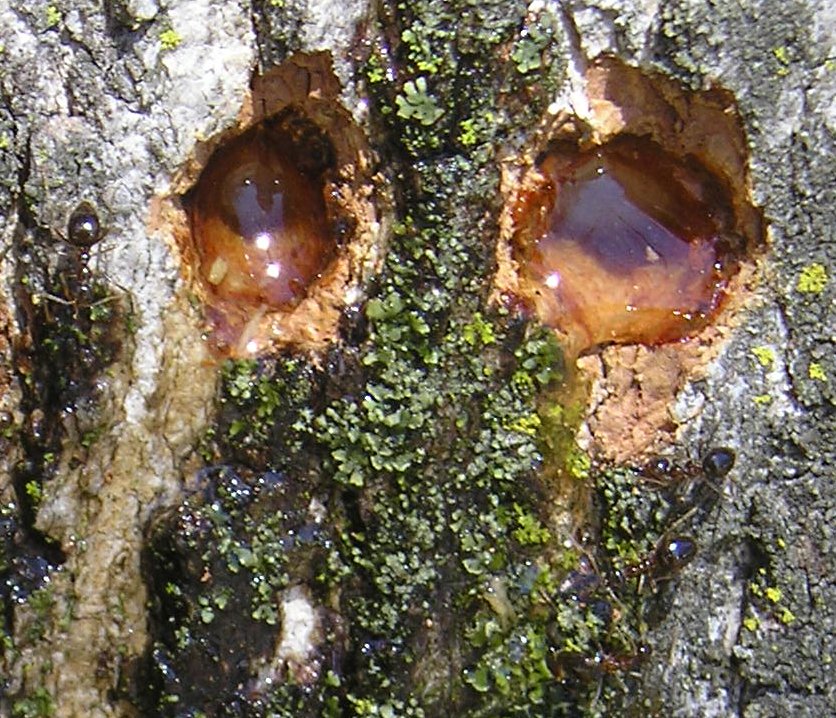 Upon inspecting the tree after the bird left, I found two sets of wells -